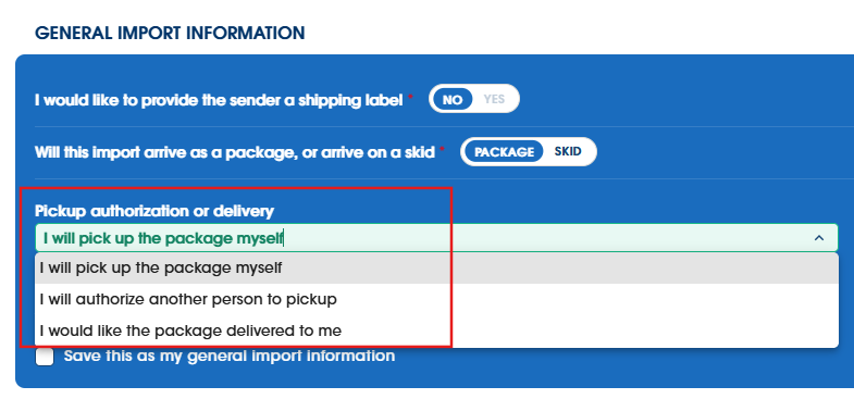 You will be able to select from our pickup options from one of our retail locations, authorize someone else to pick up on your behalf from our retail locations, or select our delivery service to have the package shipped directly to you.