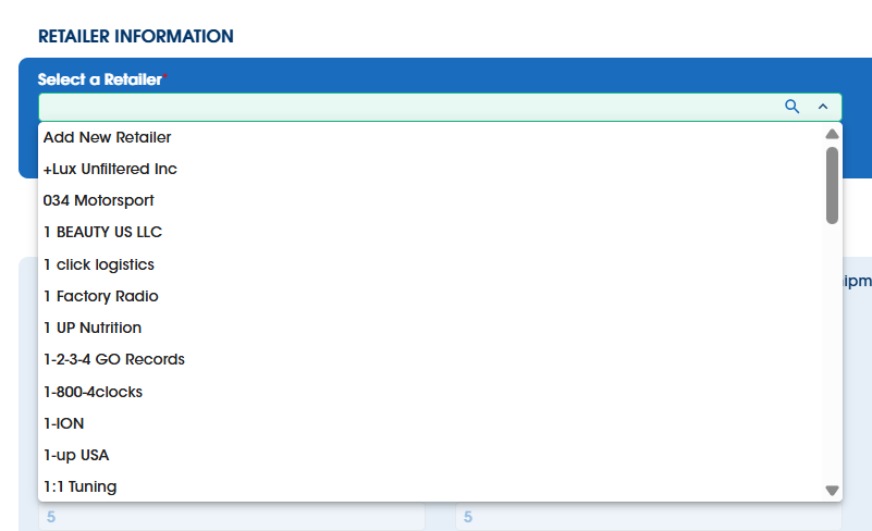 You will then select the retailer, which is the vendor that you placed the order with. You can add a new retailer or select from our drop-down menu