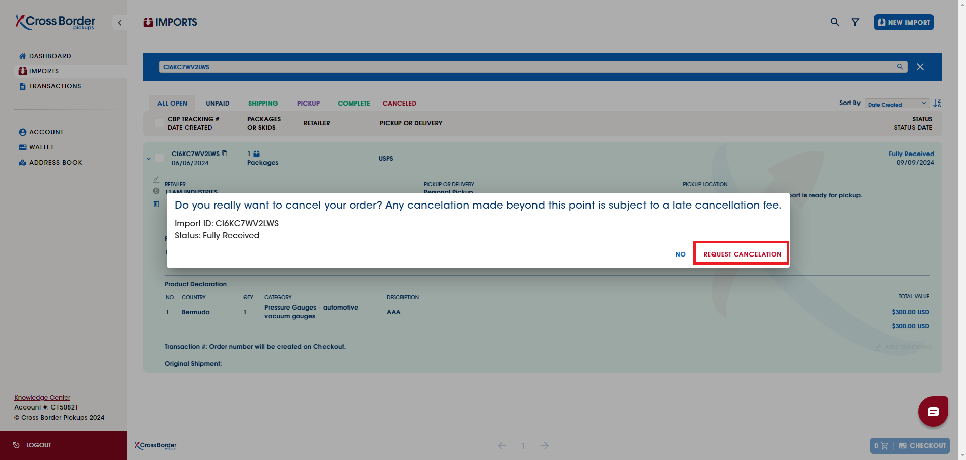 3. Open the order and click on the cancel button. Since we have received and processed your packages, you would have to request a cancelation