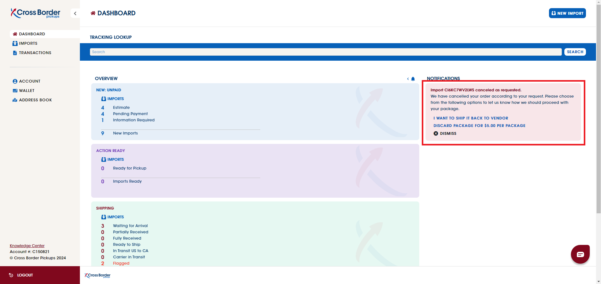 4. Once your cancelation is approved, you will received a notification on your dashboard and your email.